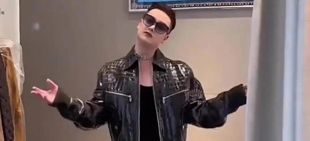 在视频里,他留着短发油头,穿搭风格独特,因此在网络世界迅速走红。
