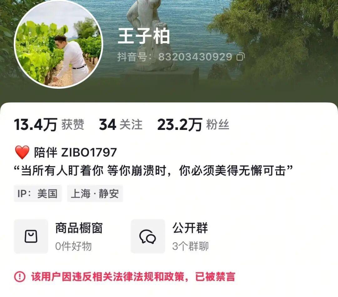 直到11月25日,“王子柏”账号已被封禁,在平台搜索已找不到该账号。