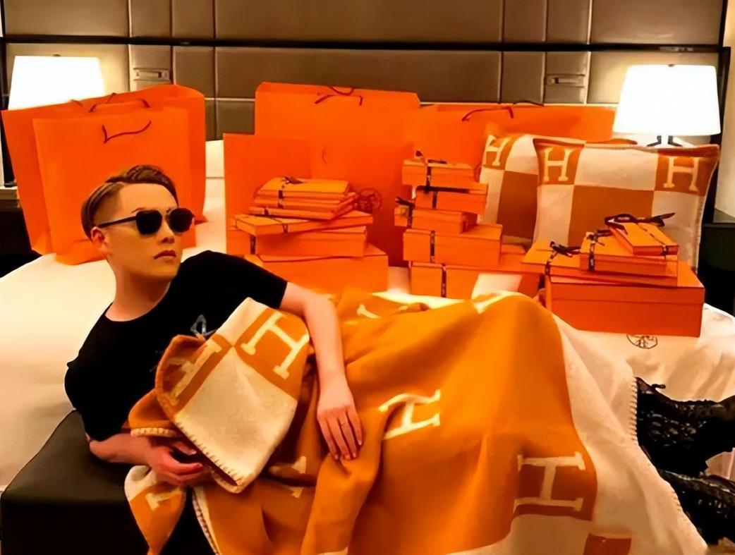 拍视频不是炫耀定制的高级汽车,就是把名牌包的橙色盒子堆得满墙都是,给人感觉他花钱像普通人买菜一样随便。