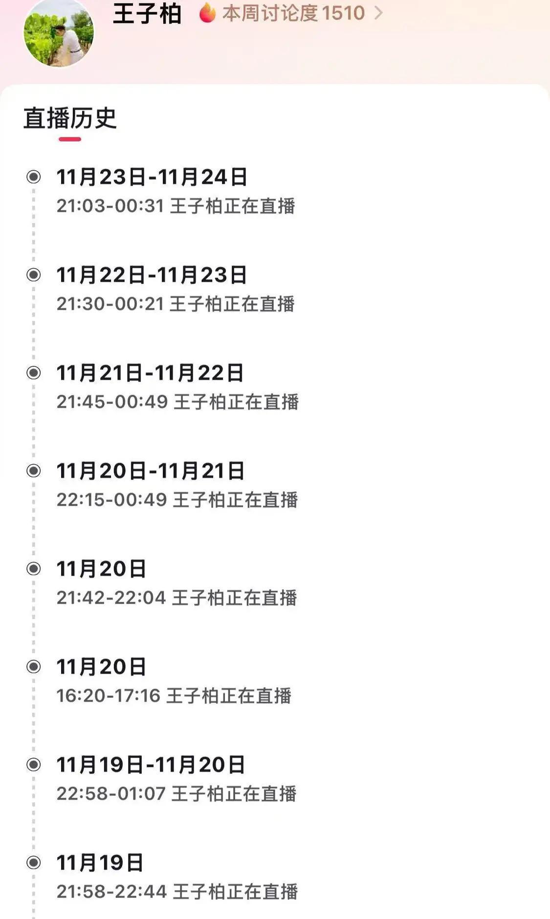 从他以王子柏的身份开始直播后,直播的次数逐渐开始增加,今年1月8日至24日期间共计直播19场。