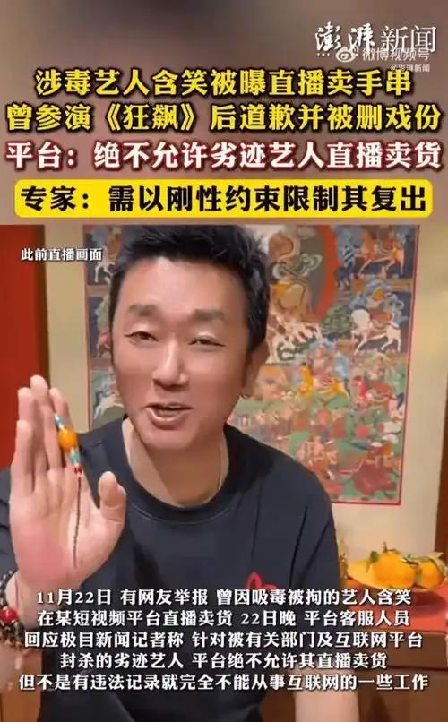 还有艺人含笑,因为吸毒被拘留,复出直播卖手串,被举报后其账户已更名并隐藏直播动态。